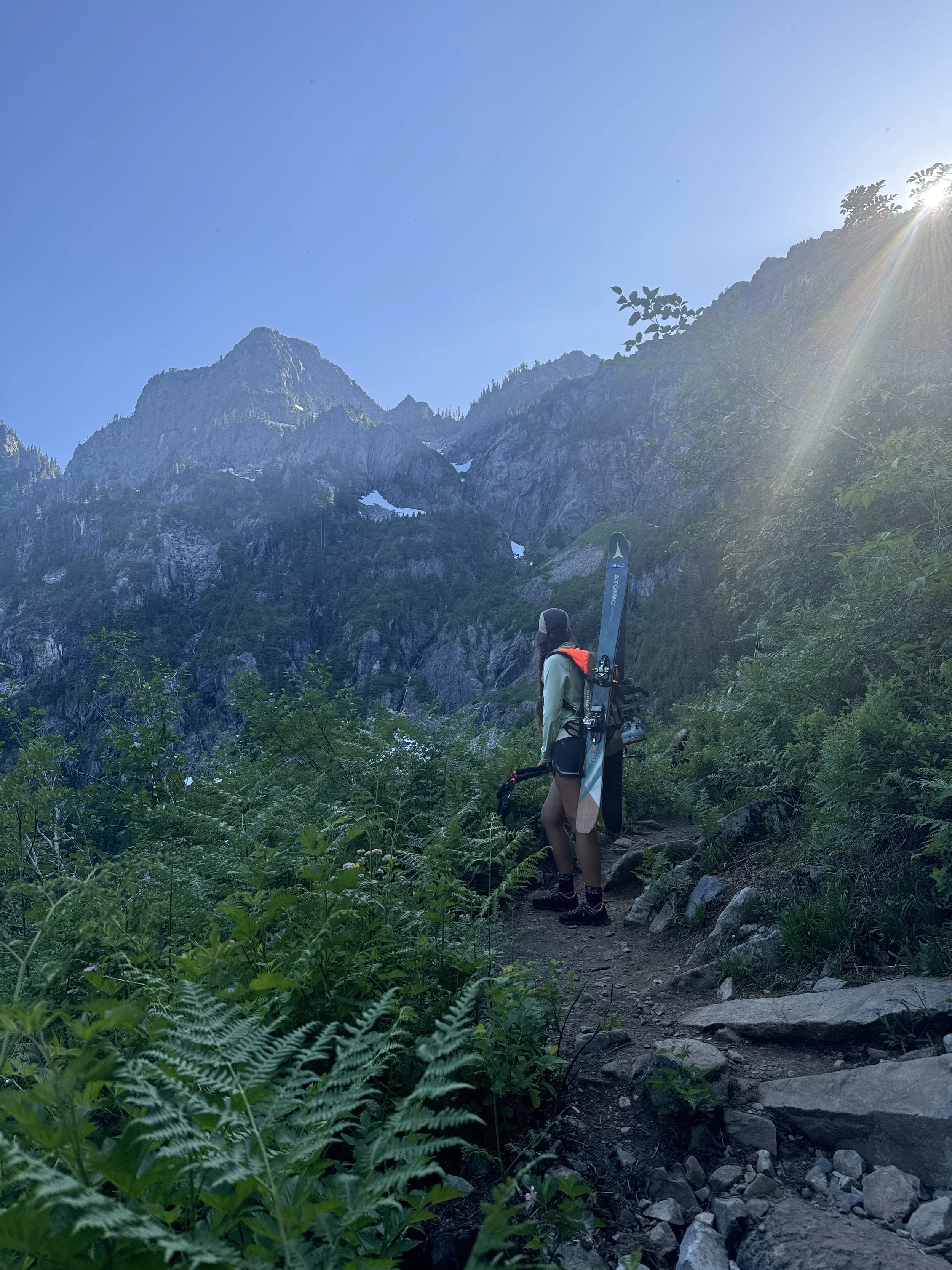 It’s whimsical. It's sweaty. It’s often type-2 fun at its finest. Imagine carrying your skis past wildflowers, dodging mosquitoes, sidestepping sun cups, and doing it all for maybe six turns on some crusty July snow. It’s silly—but sliding on snow, even when the conditions are laughably subpar, still sparks ridiculous joy.