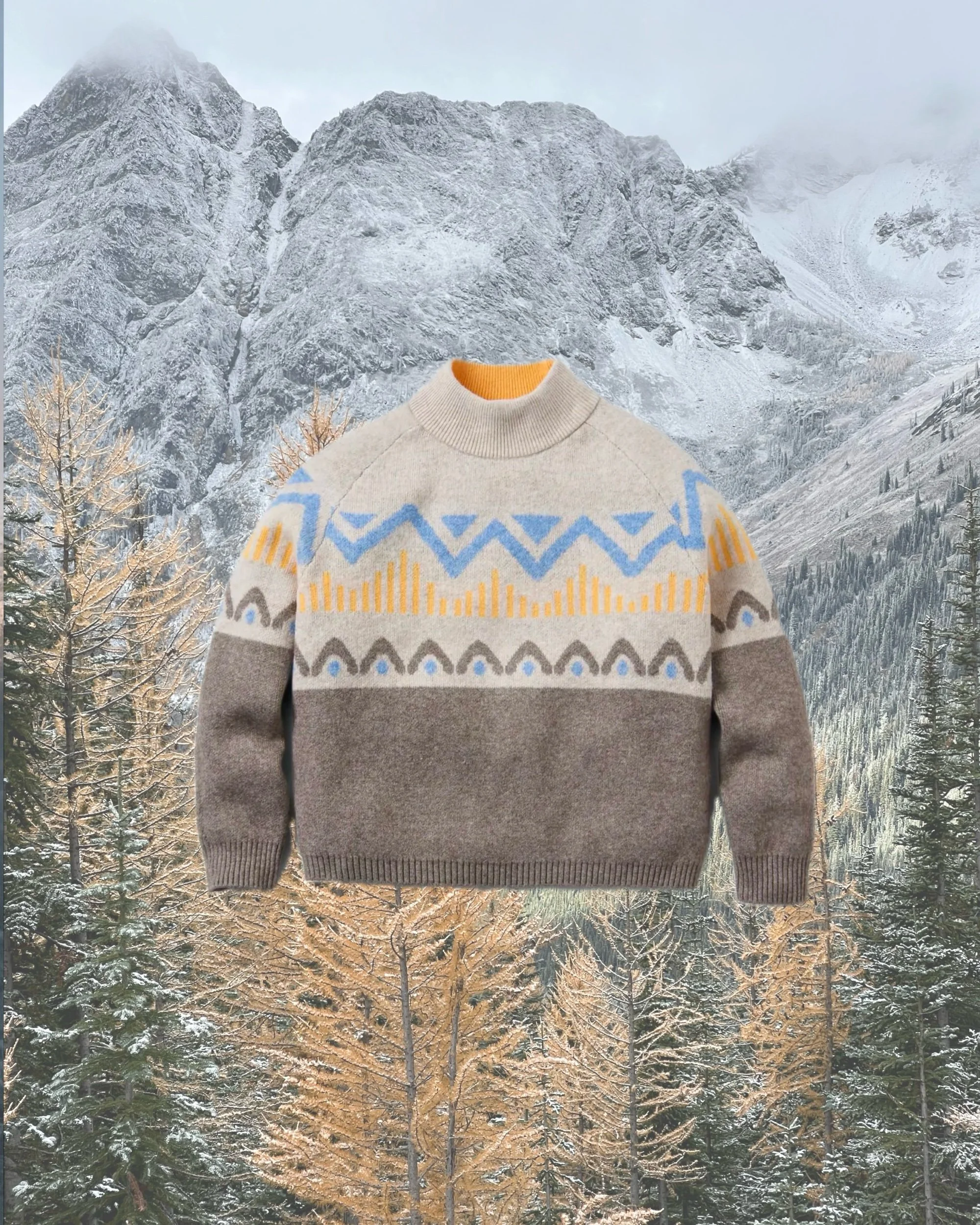 An easy going and soft sweater with a relaxed fit, perfect for warmth on the road and around the fire. I size up for a cozy oversized fit. Ps. There are matching mittens you do not want to miss out on.